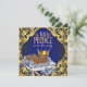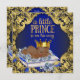 O chá de fraldas real, azul e dourado, da etnia príncipe, com adorável menino bebê com coroa dourada numa cama de rosas azuis e travesseiro num belo fundo azul real e espiral dourada. Este convite ao chá de fraldas de príncipe afro-americano, azul e dourado, é facilmente personalizado para o seu evento, adicionando os seus detalhes no estilo de letra, cor e texto da sua escolha.
