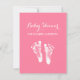 Comemore a chegada de um bebé novo com este convite cor-de-rosa simples do chá de fraldas da menina com pegadas recém-nascidas bonitos do bebê. Personalize este design cor-de-rosa e branco precioso adicionando o nome mamãe-à-estar, da informações de contacto, e dos detalhes do partido às áreas feitas sob encomenda do modelo.