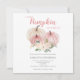 Um convite de chá de fraldas de abóbora cor-de-rosa. Fácil de mudar o texto. Abóbora de aquarela bonito na frente e no verso do convite.