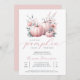 Chá de fraldas Rosa De Abóbora. Este adorável Convite para Chás de fraldas apresenta um belo roteiro de caligrafia com flores e abóboras cor-de-rosa pastel - a forma perfeita de sotaçar o seu chá. Personalize facilmente a maior parte do texto para corresponder ao seu evento! As cores do texto e do plano de fundo são totalmente editáveis, basta clicar no botão "Editar usando a Ferramenta de Design" para editar qualquer um dos elementos que você deseja alterar.