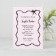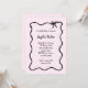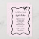 Este convite de chá de fraldas estilo chic e elegante de coquete apresenta um quadro ilustrado, desenhado com uma mão preta, ondulado, com um arco e um roteiro manuscrito na moda em um fundo cor-de-rosa pincelado para um chá de fraldas feminino estilo parisiense ou francês.