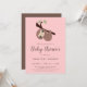 Um convite para chás de fraldas de preguiça bonito e adorável para meninas. Ilustração digital de Kristine Lee. Para obter mais informações, visite www.kristineleedesigns.com