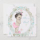 Menina doce com calças cor-de-rosa, arco de cabelo, sapatilhas de coelho e coroa de princesa num fundo chic bonito cor-de-rosa e azul-lacrimogêneo. Você pode personalizar este adorável convite para chás de fraldas rosa e azul-lacrimogêneo com seus detalhes de evento no estilo de fonte, cor de fonte e texto de sua escolha.