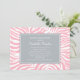 O convite para chás de fraldas moderno e na moda apresenta um padrão de impressão animal de zebra girada e uma paleta colorida de cor rosa, cinzas e branco.