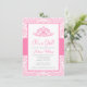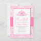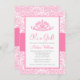 Rico damask princesa temida convites para chuveiros de bebês. Apresentando uma ilustração bonita da coroa com uma cor damasco rosa e branca. Personalize facilmente a sua festa!