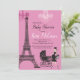 Convite Chá de fraldas rosa das garotas da Torre Eiffel de