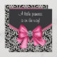 Cor-de-rosa elegante e preto com arco rosa negro, convite de chá de fraldas da princesa da menina. Este adorável convite para chás de fraldas rosa e preto damask é facilmente personalizado para o seu evento adicionando detalhes do evento, estilo de fonte, tamanho de fonte e cor e texto.