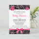 Convite Chá de fraldas Rosa Ladybug Zebra Stripe