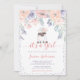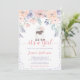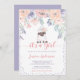 Este convite de chá de fraldas de borrego bonito apresenta flores púrpuras e cor-de-rosa com letra de caligrafia.