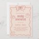 Convite Chá de fraldas rosa suave com ícones de bebê e qua