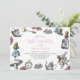 Vintage Alice no País das Maravilhas ilustrações de Alice, o Coelho Branco, uma chave, olhe e rosas cor-de-rosa com um padrão de bolinhas rosa no reverso. Personalize este design alterando o texto, a cor do texto ou a cor do plano de fundo no verso. Excelente para aniversários, festas de chá, chás de fraldas e muito mais.