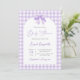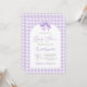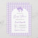 Chá de fraldas roxo Convite neutro com arco, chá de fraldas de gingham de lavanda