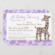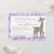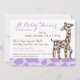 Impressão de girafa roxa e marrom adorável, convite para chá de fraldas com girafa branca e texto mutável.
