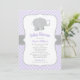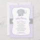 Convite Chá de fraldas Roxo Moderno e Cinza Elefante