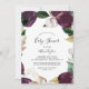Este moody chá de fraldas roxo é perfeito para um chá de fraldas moderno. O elegante design floral apresenta flores púrpura de ameixa escura e tulipas brancas com folhas verdes esmeraldas e sotaques dourados.