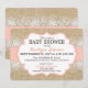 Convite Chá de fraldas Russo Burlap Modern Lace Coral Girl