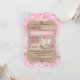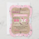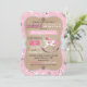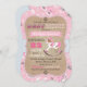 Cartão de convite para chá de fraldas da rusticidade. Apresentando impressão de bandana cor-de-rosa com denim e um cavalo de balanço. As cores são pinks, azul claro, esticadas e brancas.