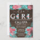Este convite para chás de fraldas moderno e rústico é perfeito para um evento no país da moda e na moda. Apresenta rosas claro desenhadas à mão e flores cor-de-rosa-escuras e folhas verdes em folha enroladas em cima de tábuas de madeira marrom com a citação fofa, "É uma menina", com tipografia decorativa floral. É bonito, elegante e único. ***NOTA DE DESIGN IMPORTANTE: Para qualquer solicitação de design personalizada, como solicitações de correspondência de produtos, alterações de cor, mudanças de posicionamento ou qualquer outra solicitação de alteração, clique no botão "MENSAGEM" ou envie um e-mail ao designer diretamente em lafemme.art@gmail.com. Você pode até enviar um e-mail para ela solicitando um design completamente personalizado e novo.