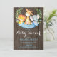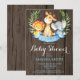 Rustic Safari Jungle Animal Boy Invitation. Fundo de Madeira Azul e Rústica. Garoto Chá de fraldas Convide. Flor Floral de Aquarela e Sair. Para mais personalização, clique no botão "Personalizar" e use nossa ferramenta de design para modificar este modelo.