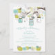 Convite para chá de fraldas de Mason moderno e moderno, apresentando um galho de árvore com flores florais bonito, verdes e castanho, e os populares jares de mason rústicos suspensos. Um vidro tem "é um menino" impresso nele. Visite nosso compro para ver nossa bela seleção de convites de jarro de mason para um chá de fraldas de meninas, chá de fraldas de meninos ou chá de fraldas neutro em gênero.