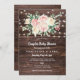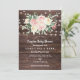 Fundo russo de madeira escura com florais cor-de-água cor-de-rosa pincelada e carateres festivos iluminam o convite para chá de fraldas feminino. Todos os textos podem ser alterados. Precisa de um item correspondente não mostrado? Entre em contato com o designer em info@lemontreecards.com