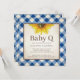 Este convite para o bebê azul gingham do país vem enfeitado com um design de toalha de mesa de picnic com flores amarelas em negrito. Seus detalhes de churrasco estão definidos em um tipo elogioso. O design de papel vintage é transportado para o fundo do seu convite. Perfeito para casais, coed baby, chás de menino, churrasco de bairro convidam ou o que quiserem. Este é um design quadrado único de alta qualidade. Para ver mais convites visite o VG Invites em www.zazzle.com/vginvites