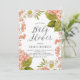 Convide familiares e amigos para o seu chá de fraldas com este convite floral personalizável. Um chá de fraldas elegante com ilustrações aquarelas de drangeas de pêssego, flores brancas e verde com roteiro elegante. Estas cores botânicas são perfeitas para chás de fraldas neutros em termos de gênero.