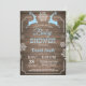 Convite de Chá de fraldas Rustic Winter Veer Snowflake Boy. Floco de neve branco e azul. Convite para Chás de fraldas. Convite para Chá de fraldas de férias de inverno. Fundo Rustic Wood. Campo de Vintage Retro Barn Para mais personalização, clique no botão "Personalizar" e use nossa ferramenta de design para modificar este modelo.