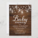 Convite Chá de fraldas Rustic Wood Mason Jars and Lights