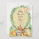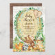 Adoráveis amigos da floresta russa convidam chá de fraldas com os animais mais doces da floresta sentados em um tronco com uma fatia de madeira enquadrada com verde e um coração de madeira com "é um menino". Visite nosso compro para ver nossa coleção de animais doces da floresta.