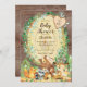 Adoráveis amigos da floresta russa convidam chá de fraldas com os animais mais doces da floresta sentados em um tronco com uma fatia de madeira enquadrada com verde e um coração de madeira com "é um menino". Visite nosso compro para ver nossa coleção de animais doces da floresta.