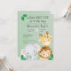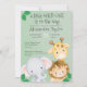 Elefante, Chá de fraldas de leão e girafa Convite Personalizado de Ricaso com detalhe verde e branco, um delicioso design animal para a mãe ser - fácil de personalizar. Um pouco selvagem está a caminho.
