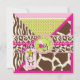 Macaco selvagem e divertido pendurado na selva e um pacificador selvagem com zebra, girafa, leopardo, e impressões de retalhos de guepardas com fitas de aparar em 3D para o chá de fraldas. As cores são pinks quentes, verdes e browns.