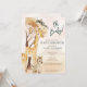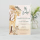 Um belo convite de chá de fraldas de "bebê" com animais safari, incluindo uma girafa, zebra e macaco.