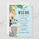 Convite Chá de fraldas Safari Lion, Elefante Girafas