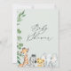 Folhagem Neutra de Gênero Moderna Convite para Chá de fraldas Safari Elegante safari temático de chá de fraldas neutro de gênero com algumas folhagens laterais e quatro animais safari fofinhos. O título da caligrafia moderna é uma imagem que pode ser removida.