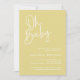 Celebrar a chegada iminente com o Convite Simples para Chás de fraldas Amarelo Oh Bebê, Script Moderno - um design eterno, neutro em termos de gênero que irradie calor e elegância. Este convite combina perfeitamente a simplicidade e a sofisticação, criando uma bela canvas para anunciar sua celebração especial. A matiz amarela quente e a delicada escrita evocam um sentimento de calma e alegria, definindo o tom para um chá de fraldas inesquecível. Quer você esteja honrando um primeiro pai ou acolhendo uma nova adição a uma família em crescimento, esses convites elevarão seu evento e deixarão uma impressão duradoura em seus convidados. A design neutra em termos de gênero garante que todos os pais espertos se sintam comemorados e apoiados.