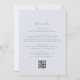 Este convite simples de chá de fraldas de QR azul de garoto rústico da Coleção Rowan é perfeito para um chá de fraldas simples. O design azul-bebê apresenta a tipografia moderna do boho, não adorada, com um estilo minimalista único. Personalize as costas com um anúncio de gênero, livros para bebê, rifa de fralda, código QR de registro e/ou quaisquer outros detalhes adicionais que possam ser úteis para os seus convidados.
