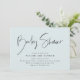 Este convite de chá de fraldas simples e elegante apresenta um script escrito à mão com os detalhes do evento abaixo.