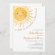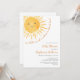 Você está planejando um chá de fraldas temático? Este belo convite para o chá de fraldas de sol de boho apresenta o texto "Nosso pequeno raio de sol está quase aqui!" com uma aquarela sorrindo o sol amarelo. Perfeito para um chá de fraldas neutro em termos de gênero. Facilmente personalizável. Original Watercolor © Michele Davies.