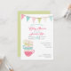 Chá de fraldas do Tea Party Personalizado cartão plano de Ricaso de Ricaso ... com padrão verde e branco de retrocesso detalhado ... um design bonito e feminino para a mãe ser