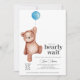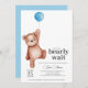 Um chá de fraldas "podemos esperar" com um ursinho de pelúcia e um balão azul para um bebê. Itens correspondentes disponíveis na coleção Teddy Bear Theme.