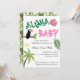 Convide todos os seus amigos e famílias para a sua festa de chá de fraldas sobre temas tropicais com este Cartão de Convite para Chás de fraldas Aloha Baby! Apresentando palmeira, pássaro tropical, flores de hibisco, folhas da selva, com tipografia "Aloha Baby", este convite terápico havaiano colorido tornará seu dia especial divertido e memorável.