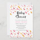 Convide seus convidados para o seu chá de fraldas com este divertido convite para Chás de fraldas cor-de-rosa e abstrato laranja com traços de tinta cor-de-rosa e laranja e um fundo com padrões correspondentes. © Mini Moi Impressões
