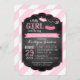 Fundo de impressão de stripe branco e cor-de-rosa com tutu de jumper poka-dot, fralda e botas na placa de convite para chá de fraldas de garota de linha de tecido.