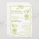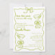 Apresentando o "Dois Tini Estão no Caminho", Funky & Whimsical Dirty Martini Twin Chá de fraldas Invitation with QR - uma maneira divertida, na moda e única de celebrar a futura mãe dos gêmeos! Este convite de chá de fraldas apresenta um quadro delicioso com um arco de coquetes encantador, juntamente com duas martinis sujas desenhadas à mão, cada uma com três azeitonas, posicionadas na diagonal para um olhar peculiar e atraente. O claro fundo branco destaca a combinação de elegantes scripts manuscritos e fontes de blocos negros, criando uma combinação perfeita de diversão e sofisticação. Ideal para dar o tom de uma inesquecível celebração de chá de fraldas gêmeo com a família e os amigos. Personalize facilmente este modelo de convite com os detalhes do evento, incluindo o Código QR no verso do seu site de registro do bebê. Também disponível como uma opção de download digital instantâneo para compartilhamento contínuo por e-mail, texto ou mídia social. Perfeito para um convite memorável de chá de fraldas duplo com uma reviravolta única e moderna!