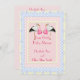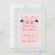 Bonito a rosa, este convite vai agradar aos seus destinatários a um chá de menina gêmea. Meninas, seguradas por cegos cercados e enquadrados em bolinhas cor-de-rosa e azul.