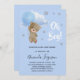 Para um chá de fraldas celebrando um menino. Um fundo azul com estrelas. Um ursinho de pelúcia segurando um balão azul claro. Personalize e adicione o nome da mãe a ser e os detalhes da festa. O nome e o texto: Oh Boy! são escritos com um estilo escrito à mão