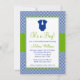 Um padrão moderno de cebola azul marinho com sotaque verde. Apresentando um bonitinho com ilustração de gravata. Perfeito para um chá de fraldas temático. Preppy e fofinho! Personalize facilmente o seu chá de fraldas.