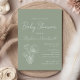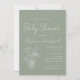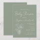 Convite Chá de fraldas Verde de Arte de Linha Botânica Mod